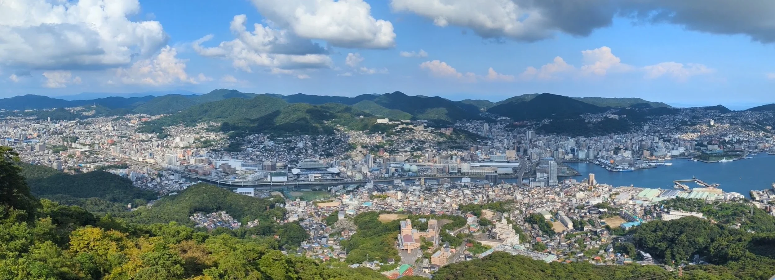 Nach dem Besuch des Museums und der Gedenkstätte mit dem damaligen Hypozentrums (also vereinfacht gesagt dem Zentrum der Bombe), machten wir noch einen Ausflug auf den Hausberg Nagasakis, den Inasa, von dem aus man die Stadt und die Umgebung hervorragend von oben betrachten kann. Die Gegend ist unfassbar schön, da Nagasaki auf einer Halbinsel liegt und einerseits von grünen Hügel und andererseits vom Meer umgeben ist. Angeblich zählt dieser Aussichtspunkt zu den drei schönsten japanischen Sonnenuntergangs-Beobachtungspunkten (die deutsche Sprache ist fantastisch).